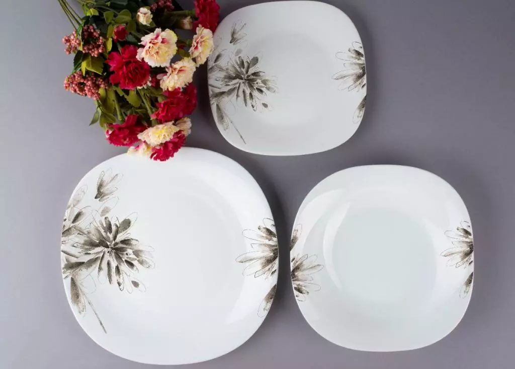 Столовий сервіз із опалового скла, класичний квадратний (Katrin), 26 предметів