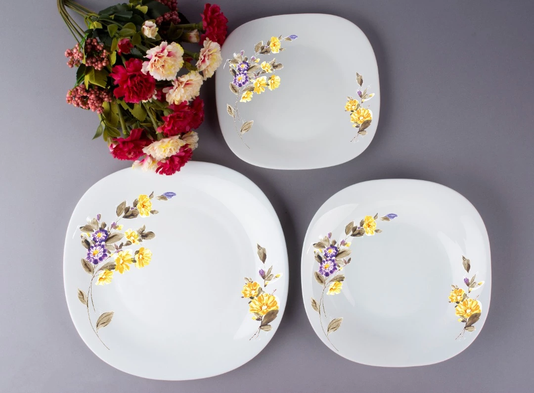 Столовий сервіз із опалового скла, класичний квадратний (Katrin), 26 предметів