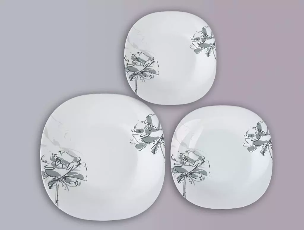 Столовий сервіз із опалового скла, класичний квадратний (Katrin), 26 предметів